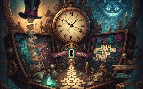 Navigate nonsensical riddles, perplexing puzzles and logic-bending locks to help the Mad Hatter retrieve the White Rabbit's Golden Watch before the Queen of Hearts turns his tea party into a Trial by Tarts!